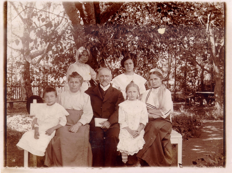 Семья Масленниковых в саду.
