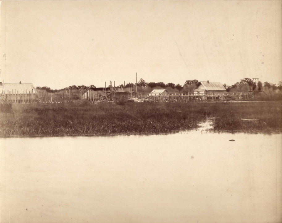 Строительство моста Виндаво-Рыбинской железной дороги через болото