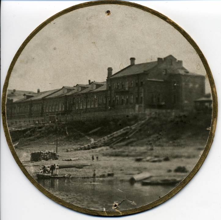 Вид корпусов фарфоровой фабрики Кузнецова в поселке Песочное с Волги