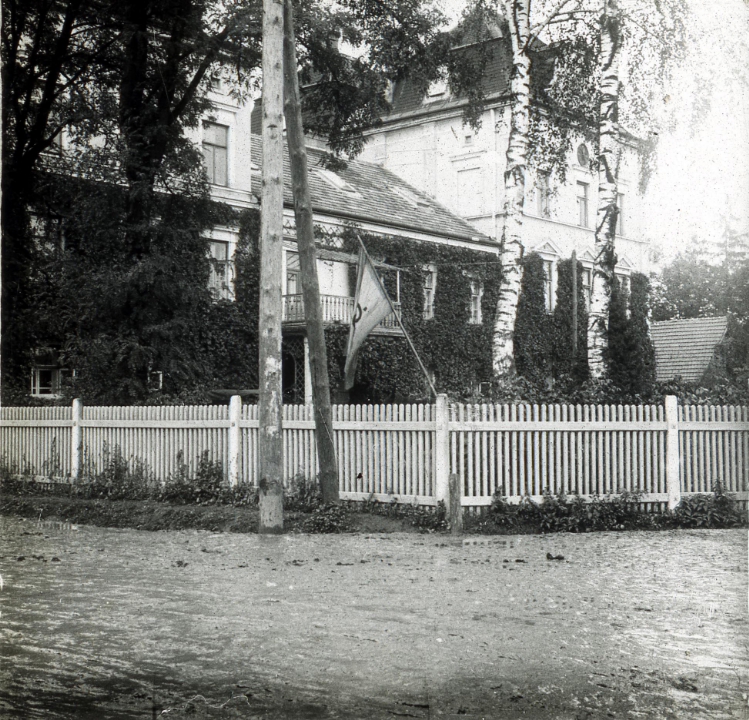 Наталия Павловна Дурдина с матерью и неизвестными женщинами у лестницы перед домом