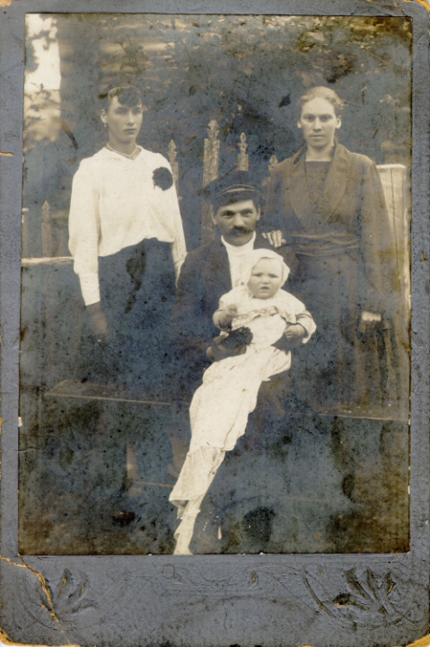 Наталия Павловна Дурдина с матерью и неизвестными женщинами у лестницы перед домом