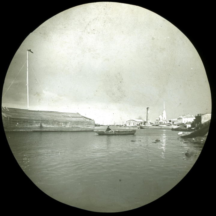 Рыбинск. Вид на склады, Набережную, Спасо-Преображенский собор