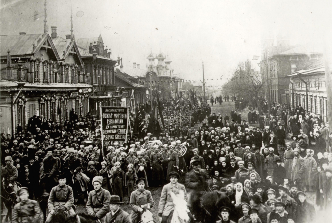 Октябрьская демонстрация на улицах города Рыбинска (ул. Кирочная)