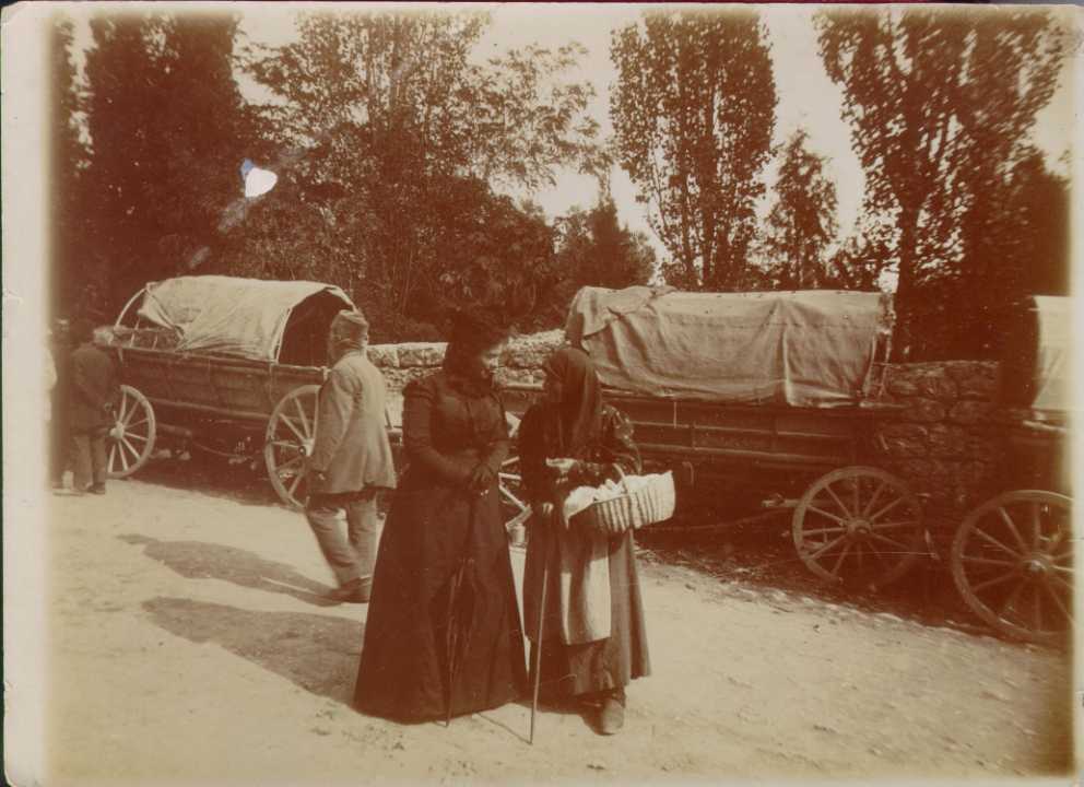 Наталия Павловна Дурдина с матерью и неизвестными женщинами у лестницы перед домом
