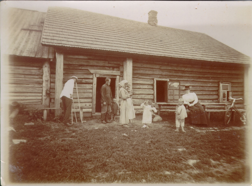 Михалкова Агриппина Владимировна у крестьянского дома.