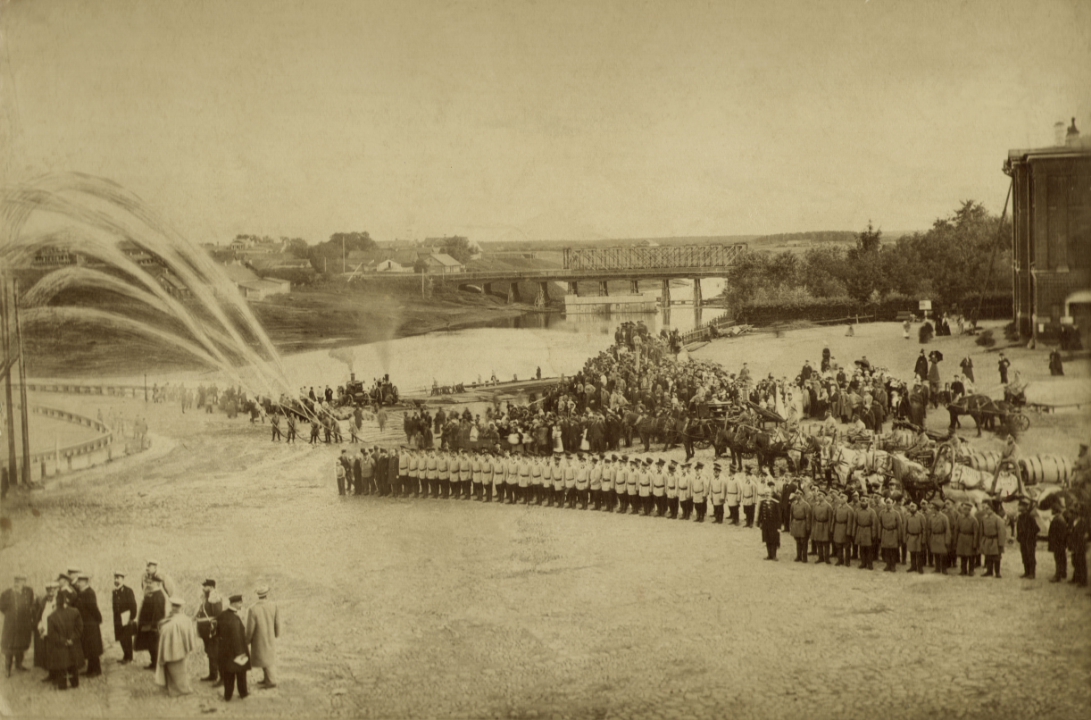 Пожарные команды Рыбинска на учениях на Театральной площади