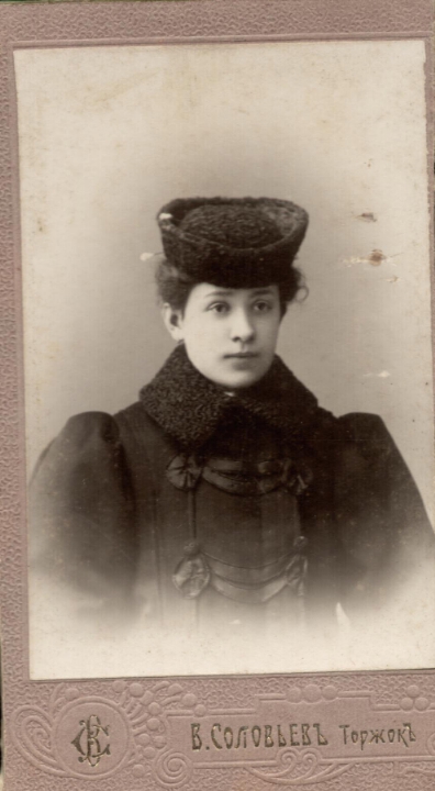 Наталия Павловна Дурдина с матерью и неизвестными женщинами у лестницы перед домом