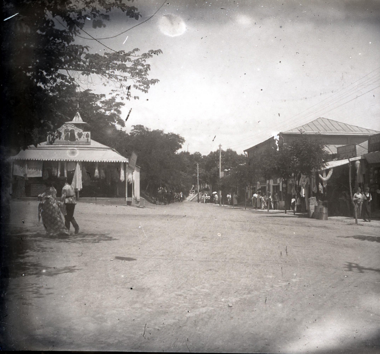 Наталия Павловна Дурдина с матерью и неизвестными женщинами у лестницы перед домом