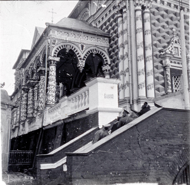 Наталия Павловна Дурдина с матерью и неизвестными женщинами у лестницы перед домом