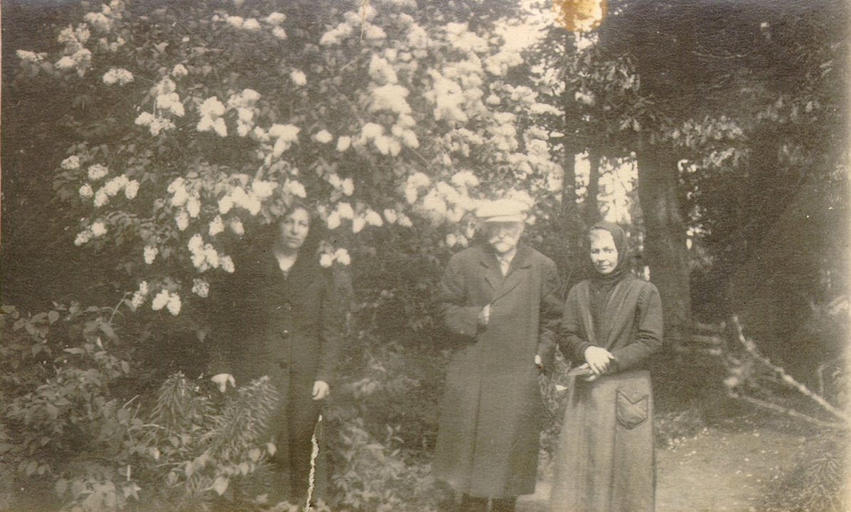 Наталия Павловна Дурдина с матерью и неизвестными женщинами у лестницы перед домом