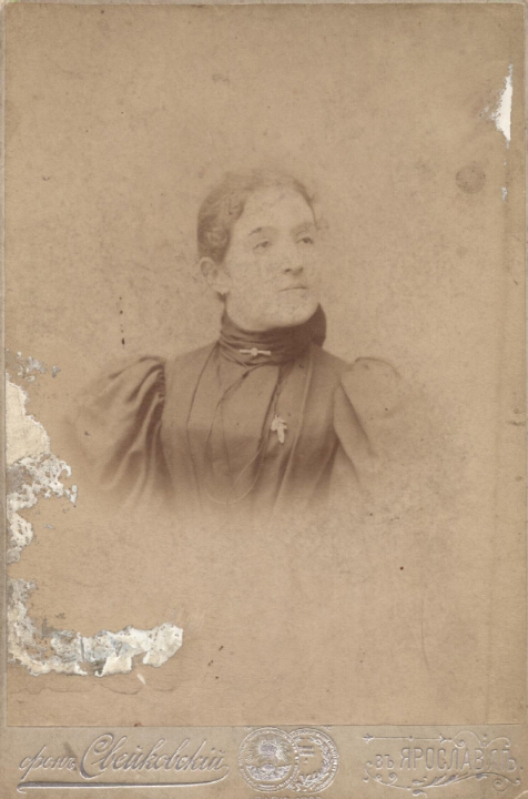Наталия Павловна Дурдина с матерью и неизвестными женщинами у лестницы перед домом
