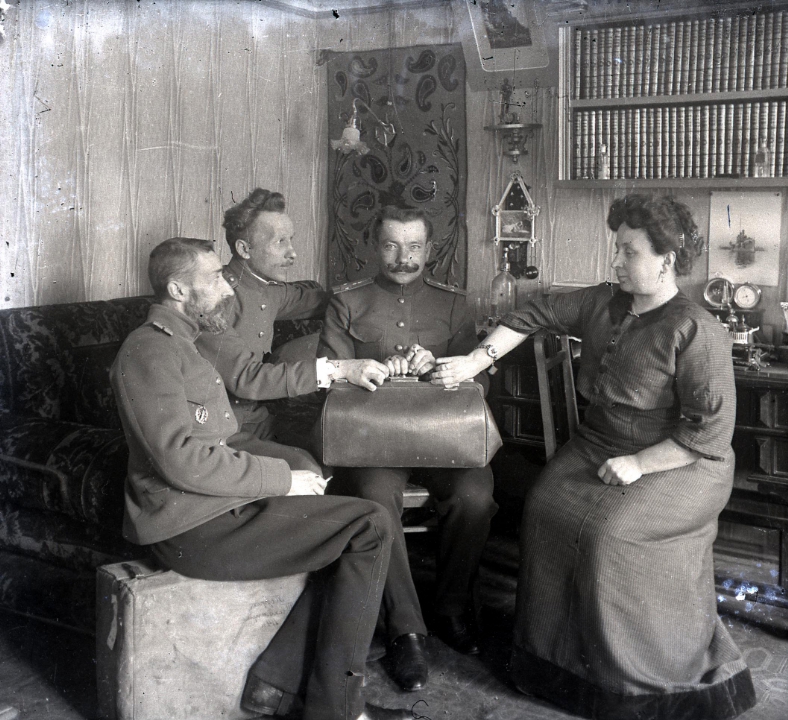 Трое военных и женщина в комнате
