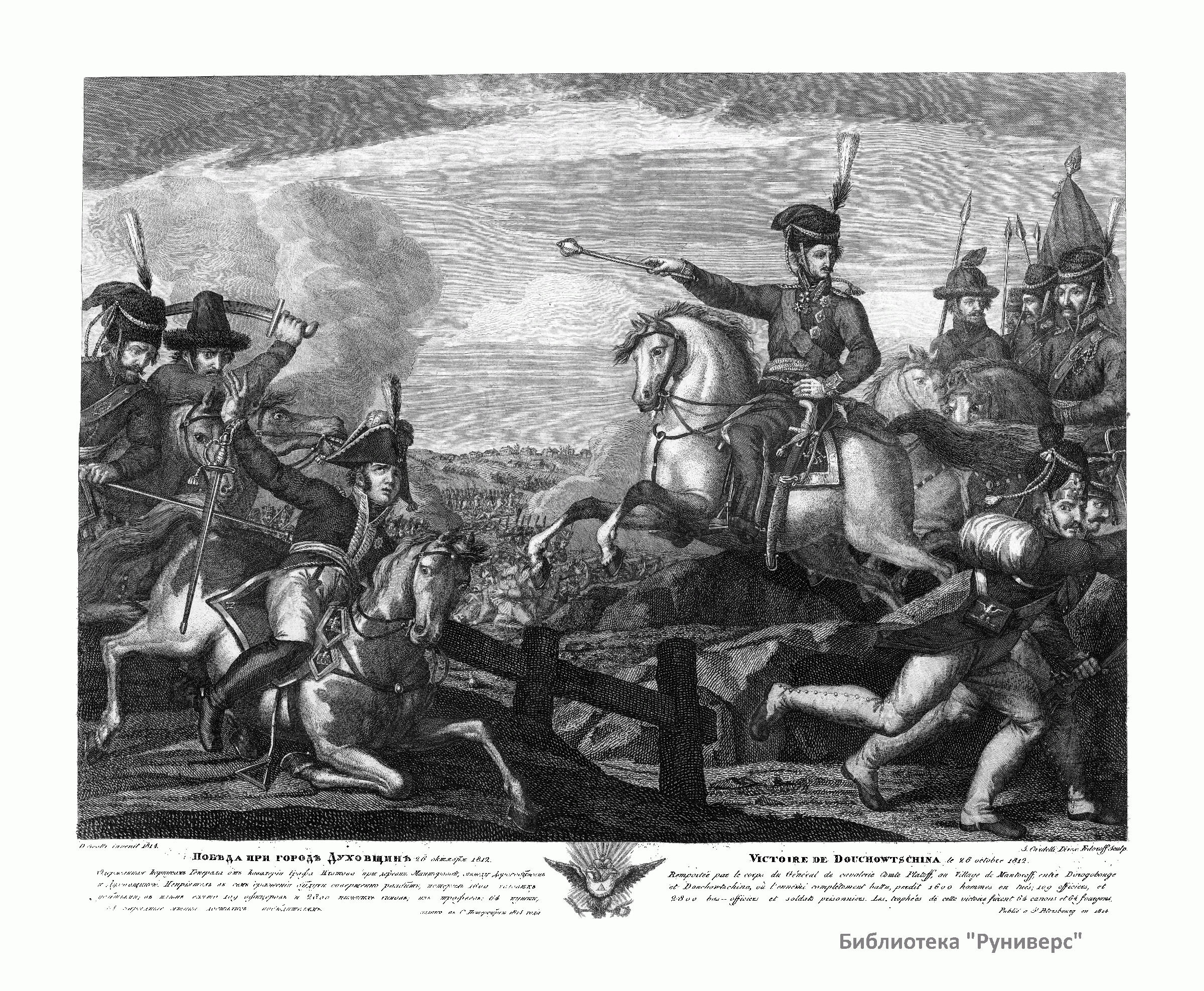 Источник: Лист из альбома: Коллекция двенадцати гравированных картин представляющих следствия достопамятнейших побед одержанных над неприятелем российскою армиею в 1812 году. Посвящена его императорскому величеству Александру I-му. Самодержцу всероссийскому. —СПб., 1814