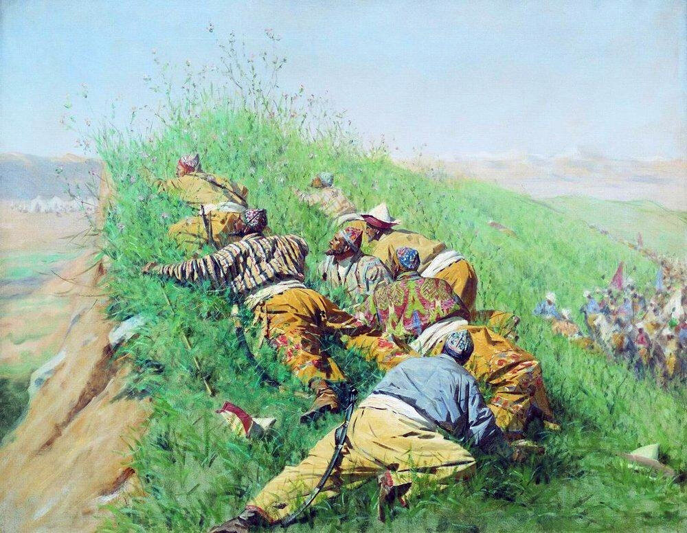 Впоследствии от пленных мы угнали, что это были беки Самаркандский, Ура-Тюбинский и Джизакский, которые были высланы, из Бухарского отряда, действительно стоявшего на Ирджаре, для нападения на наш лагерь и для прикрытия огромного стада баранов, составлявших отчасти собственность беков, а преимущественно поднести дар при Дарьинских жителей эмиру бухарскому, по случаю празднования им в Ура-Тюбе курбан-байрама.