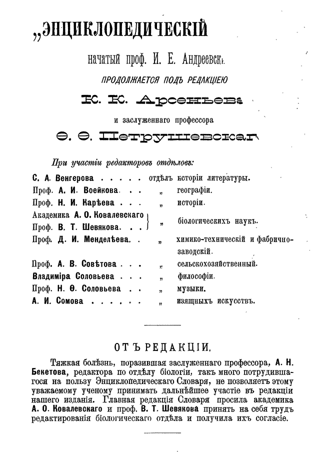 После кончины Андреевского новая редакция во главе с К. К. Арсеньевым и Ф. Ф. Петрушевским значительно увеличила число оригинальных статей и привлекла к сотрудничеству широкий круг общественно-политических деятелей либерального толка (от П. Н. Милюкова, В. И. Герье, Н. И. Кареева до легальных марксистов П. Б. Струве и М. И. Туган-Барановского, раздел философии вел крупнейший русский религиозный философ Вл. С. Соловьев), а также таких крупнейших ученых как Д. И. Менделеев, А. И. Бекетов, А. И. Воейков, Д. И. Анучин, Ю. М. Шокальский, Н. М. Книпович, А. О. Ковалевский, А. И. Советов, В. С. Соловьев и др.