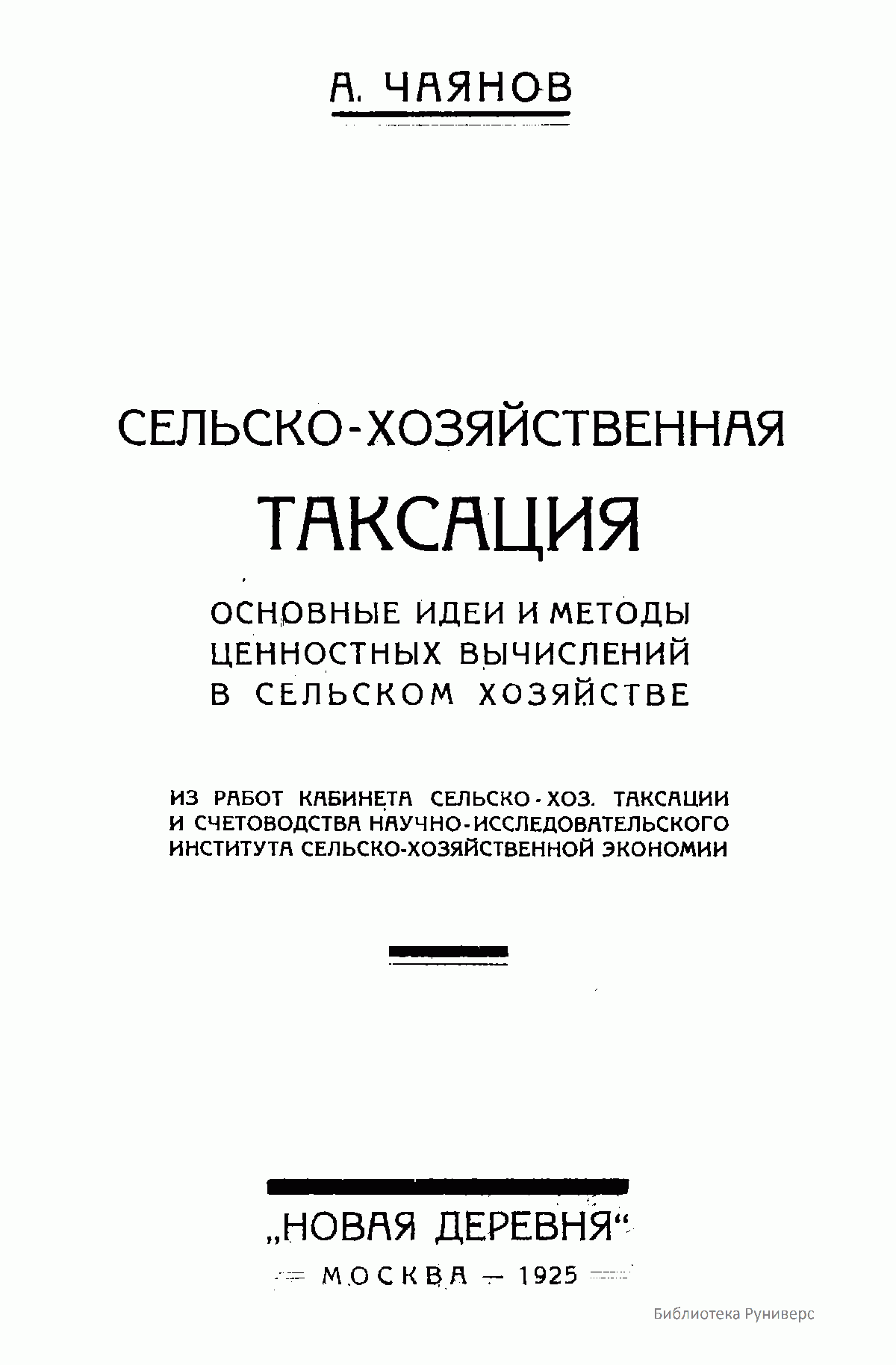 Творчество выдающегося русского экономиста-аграрника Александра Васильевича Чаянова отличается исключительным богатством и разнообразием. Оттачивая свои концепции, он развивал и дополнял их на протяжении двух десятилетий. Характерно, что Чаянов имел обыкновение работать над несколькими проблемами одновременно, последовательно публикуя различные редакции одних и тех же работ. Неудивительно, что его современники не могли охватить одним взглядом эту систему гипотез и теорий. Тем более достаточно сложен Чаянов и для сегодняшних исследователей.