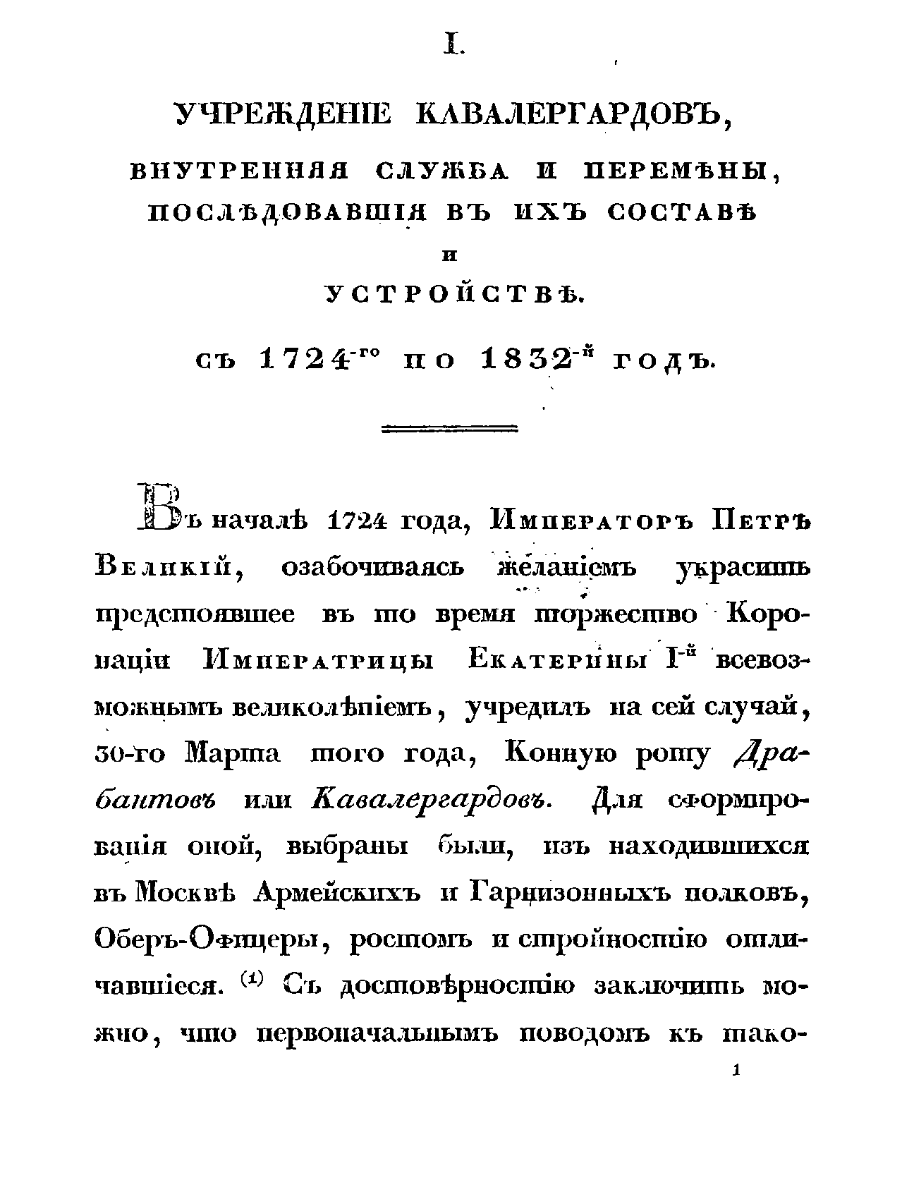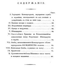 Документальное описание боевых действий полка и знаменательных исторических событий, связанных с ним, за период 1724 – 1832 годов. Приведены поименные списки командиров и офицеров полка, сравнительные таблицы штатного числа чинов и окладного жалования, описания униформы, вооружения и штандартов.
