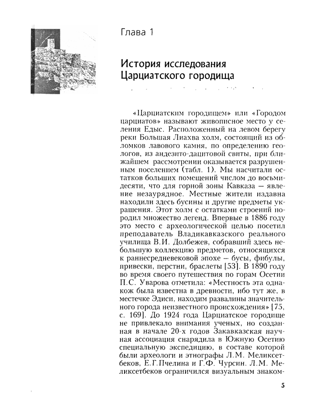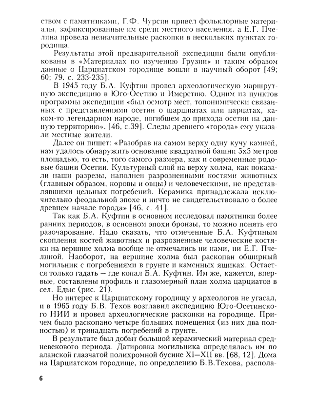 Наиболее значительным и обширным царциатским памятником является «Царциаты калак» у сел. Едыс. Обнаруженные там разновременные древности – жилые дома, башни, аланские погребения, средневековые каменные ящики и групповые погребения привлекают к себе внимание исследователей и могут послужить материалом для размышлений и гипотетических построений. Автор работы, Р.Г. Дзаттиаты, будучи сотрудником отдела арехеологии ЮОНИИ им. З.Н. Ванеева, в течение нескольких лет проводил изыскательные работы на этом памятнике, добыл яркий материал и считает возможным высказать некоторые соображения о царциатских памятниках, в частности, о памятнике «Царциаты калак».