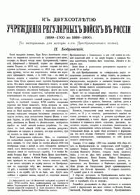 К двухсотлѣтію учрежденія регулярныхъ войскъ въ Россiи (1699-1700 по 1899-1900)