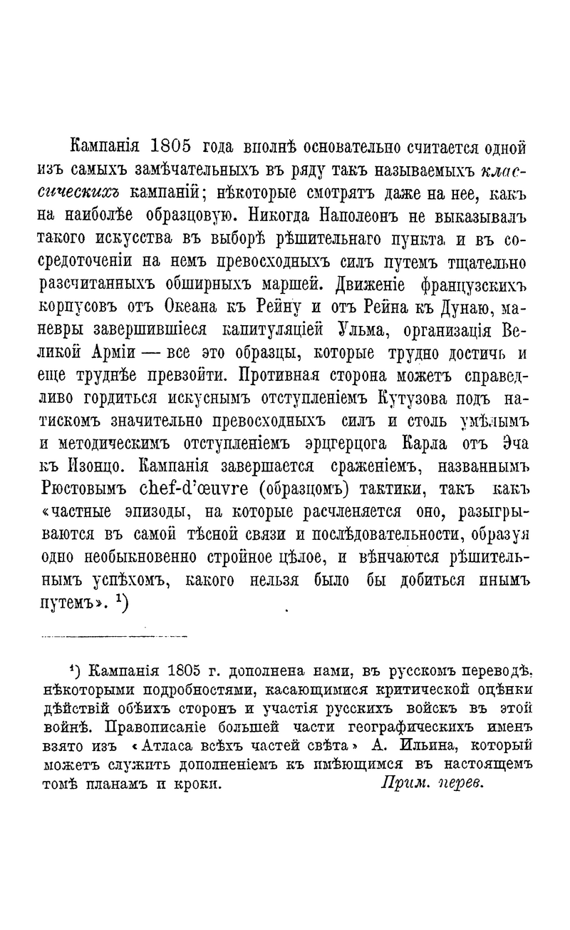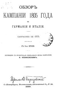 Оно было подготовлено к изданию и переведено В.Н. Клембовским, выпускником академии Генерального штаба, в дальнейшем известным военным деятелем, занимавшим должность командующего Северным фронтом накануне военного переворота генерала Л.Г. Корнилова в августе 1917 г. Через год он был принят на службу в Красную Армию, некоторое время являлся председателем военно-исторической комиссии по изучению опыта мировой войны, а в 1920 г. — членом Особого совещания при главкоме Вооруженных сил Республики. Данная книга в популярной форме довольно подробно описывает классическую кампанию 1805 г. в Европе, акцентируя внимание, главным образом на особенностях полководческого гения Наполеона.