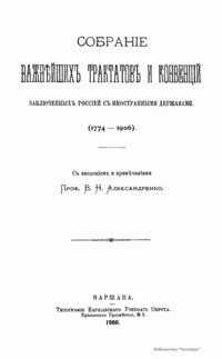 Собранiе важнѣйшихъ трактатовъ и конвенцiй, заключенныхъ Россiей съ иностранными державами