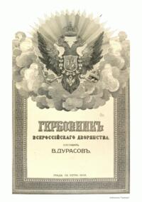 Автор этого известного генеалогического труда граф Василий Алексеевич Дурасов (1870-1971), занимавший перед крушением монархии в России пост атташе российского императорского посольства в Риме, длительное время занимался историей древнейших родов России и сумел доказать свое происхождение от герцога Дураццо. Надо сказать, что В.А. Дурасов прекрасно знал историю не только своего рода, но и большинства других российских дворянских семей титулованной знати. В подтверждение этому он и опубликовал в 1906 г. книгу «Родословная книга всероссийского дворянства». В 1911 г. им было получено подтверждение своей «голубой крови» в Ватикане от Папы Римского Святого Пия X. В том же году в Мадриде Василий Дурасов получил письменное подтверждение своего титула герцога Дураццо от короля Испании Хуана Карлоса. А в 1912 г. права В.А. Дурасова на титул графа Дураццо были подтверждены Палатой депутатов Неаполя, т. к. из этого города ведёт своё начало «линия Дураццо» Анжуйской династии. В Англии соответствующий королевский сертификат Дурасову был выдан в 1914 году. 3 октября 1916 г. права В.А. Дурасова как представителя древнейшего королевского рода Капетингов и её Бурбонской ветви были официально подтверждены указом императора Николая II. В 1921 году Франция тоже признала В.А. Дурасова представителем рода Капетингов и её Бурбонской ветви. Наконец, в январе 1917 г. император Николай II пожаловал фамилию Дурасов-Дураццо-Анжуйский троюродному брату В.А. Дурасова (умершего бездетным) Николаю Петровичу Дурасову (1870-1940). «Гербовник Всероссийского дворянства», составленный В.А. Дурасовым, насыщенный цветными иллюстрациями гербов, включает в себя описания: Большого Российского государственного герба и правящего дома Гольштейн-Готторпской династии и дома Романовых, Гербы Великих и Удельных княжеств древней Руси, Гербы княжеских, герцогских, графских и дворянских фамилий, происходящих от Рюрика, Гербы фамилий, происходящих от князей Туровских, Гербы фамилий, происходящих от великих князей Черниговских, Гербы фамилий, происходящих от князей Голицыных и Владимира-Волынских, Гербы фамилий, происходящих от князей Смоленских, Гербы фамилий, происходящих от князей Ярославских, Гербы фамилий, происходящих от князей Смоленских, Гербы фамилий, происходящих от князей Ростовских, Гербы фамилий, происходящих от князей Белозерских, Гербы фамилий, происходящих от великих князей Суздальских и Нижегородских, Гербы фамилий, происходящих от князей Стародубских, Гербы фамилий, происходящих от князей Голицыных и Дмитровских, Гербы фамилий, происходящих от Великих князей Литовских.