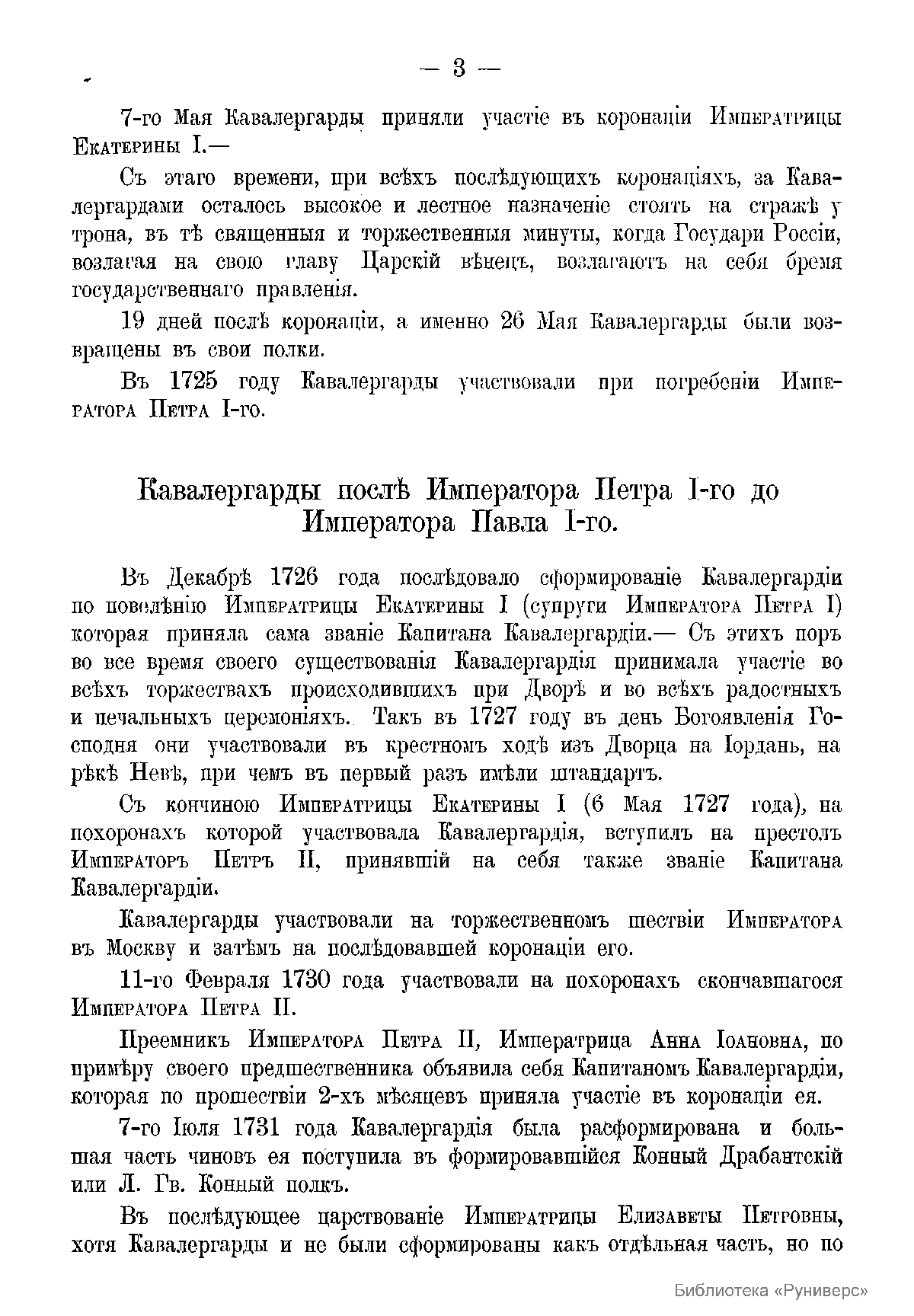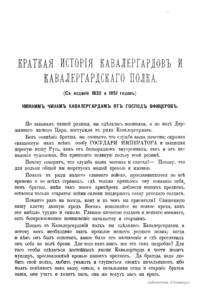 Краткая исторiя кавалергардовъ и кавалергардскаго полка
