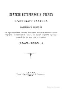 Краткий исторический очерк Орловского-Бахтина кадетского корпуса, с приложением списка бывших воспитанников этого корпуса, окончивших курс за время первого пятидесятилетия со дня его открытия. (1843-1893 гг.)