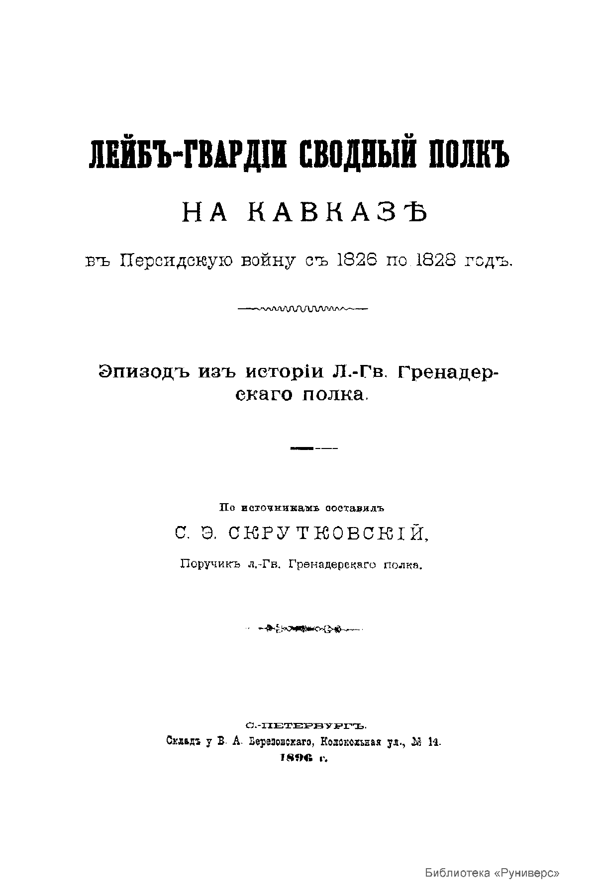 Лейбъ-гвардiи сводный полк на Кавказѣ въ Персидскую войну съ 1826 по 1828 годъ. Эпизодъ изъ исторiи Л.-Гв. Гренадерскаго полка