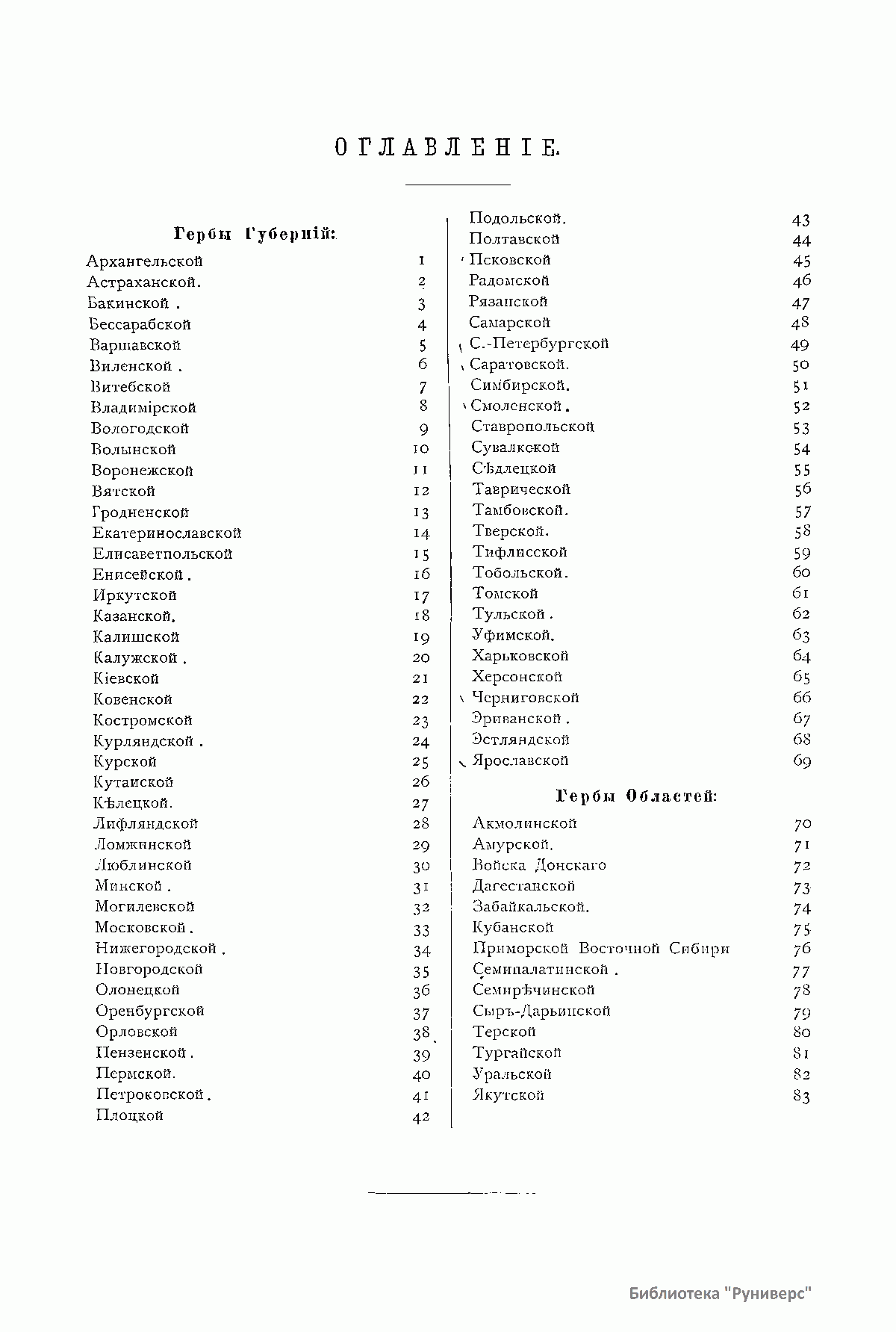 Настоящее издание представляет гербы 69 губерний и 14 областей Российской империи и адресовано всем интересующимся историей России. Цветное изображение каждого герба сопровождается подробным его описанием и информацией о дате утверждения герба императором.