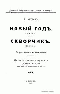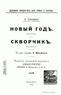 Сказка А. Алтаева «Новый год» о смерти маленького мальчика написана в жанре рождественского рассказа. Рождественский или святочный рассказ – литературный жанр, характеризующийся определенной спецификой в сравнении с традиционным жанром рассказа. Основателем жанра рождественского рассказа принято считать Чарльза Диккенса, который задал основные постулаты «рождественской философии»: ценность человеческой души, тема памяти и забвения, любовь к «человеку во грехе», детство. Традиция Чарльза Диккенса была воспринята как европейской, так и русской литературой и получила дальнейшее развитие. Среди наиболее значительных произведений русских писателей, написанных в жанре рождественского рассказа, – «Мальчик у Христа на ёлке» Ф. М. Достоевского, цикл святочных рассказов Лескова, рождественские рассказы А. П. Чехова (как, например, «Мальчики»). Сказка «Скворчик» обращает внимание юного читателя на больных и обездоленных детей.