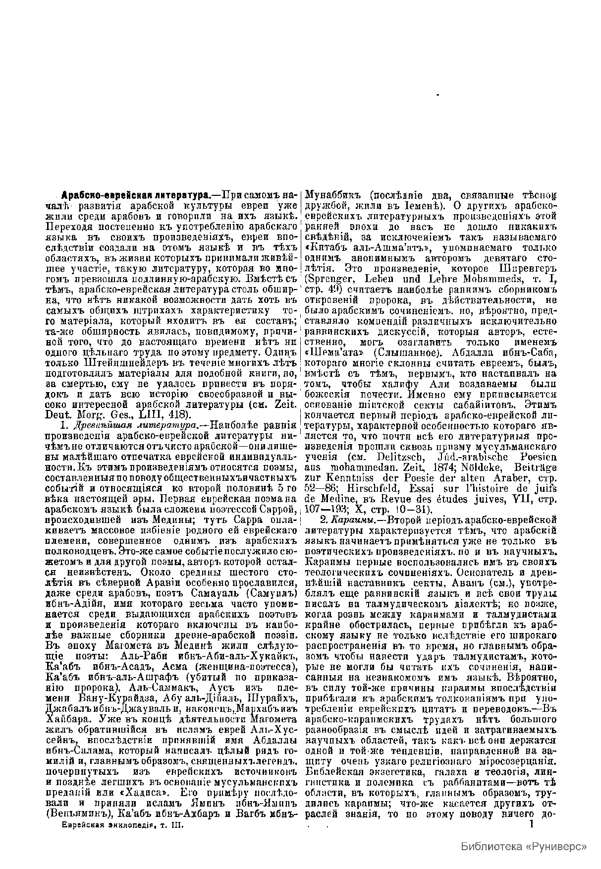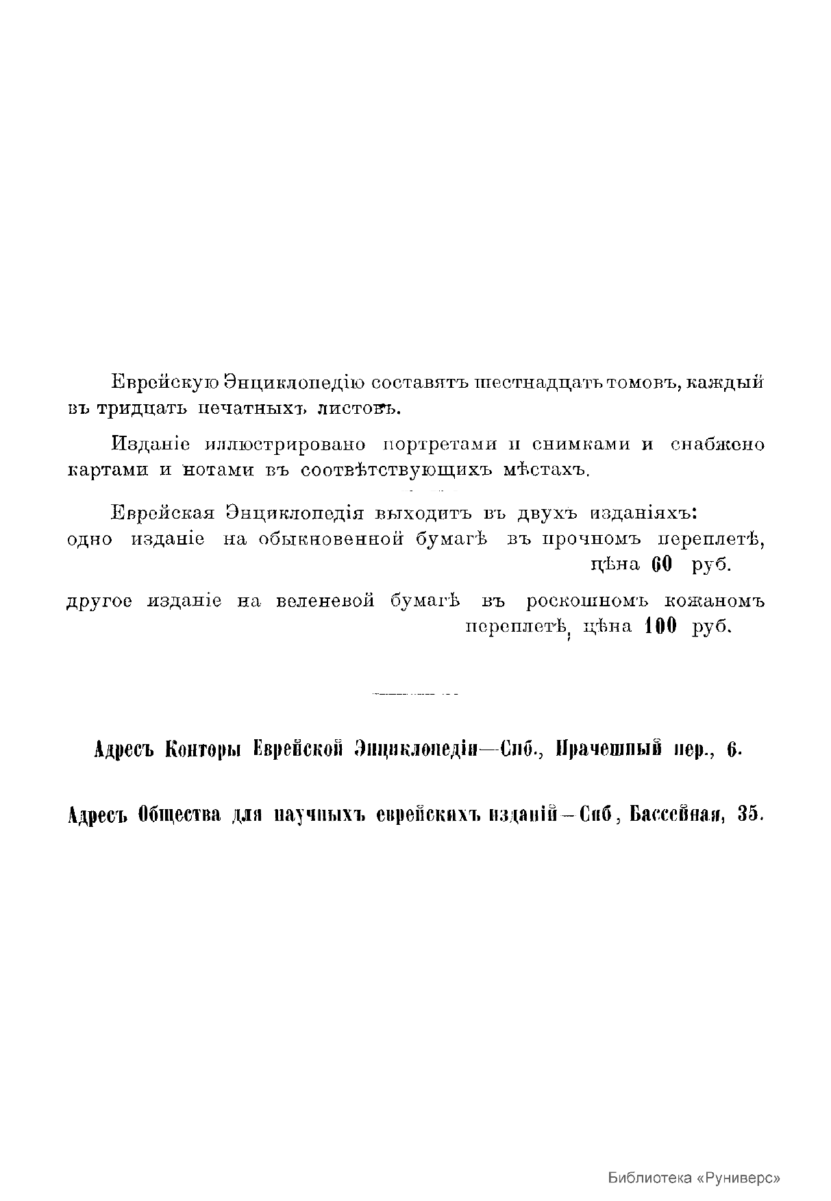 Первый крупный энциклопедический свод знаний о еврействе на русском языке. Энциклопедия была опубликована в 1908 – 1913 гг. в шестнадцати томах в Санкт-Петербурге «Обществом для научных еврейских изданий» и «Издательством Брокгауз – Ефрон». Основой и образцом для нее послужила вышедшая несколько годами ранее двенадцатитомная «The Jewish Encyclopedia» (London; New York, 1901 – 1906). Однако ее материал был существенно дополнен и расширен авторами «Еврейской Энциклопедии Брокгауза» во всем, что касалось истории, культуры и современного положения еврейских общин в Восточной Европе. В работе над «Еврейской энциклопедией Брокгауза» принимали участие виднейшие представители российской иудаики, гебраистики и востоковедения: А.Гаркави, Д. Гинцбург, Ю Гессен, С. Дубнов, И. Маркон, Н. Переферкович. «Еврейская энциклопедия Брокгауза» до сих пор остается одним из важнейших источников справочной информации и статистических данных о почти шестимиллионном еврейском населении Российской империи начала XX в. И потому ее данные можно отнести к числу ценных источников сведений по социально-политической, этнической, культурно-религиозной истории и исторической демографии России и сопредельных ей стран.