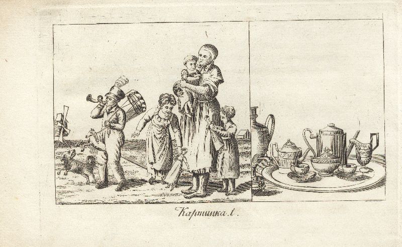 Через все повествование проходит одна и та же героиня, в нашем случае – девочка Аннушка, «добрая, рачительная девочка». Каждая иллюстрация разделена на две части: на одной – изображен тот сюжет, о котором пойдет речь в рассказе, а на второй – всегда изображаются те предметы, название и предназначение которых автор хотел бы сделать доступными для детей. Аннушка то подает еду бедному человеку – так ей подсказывает ее «доброе и человеколюбивое» сердце, то рассматривает принесенные с рынка овощи и плоды, то «пособляет поварихе». Везде героиню окружает множество предметов. Они-то и изображены на каждой иллюстрации отдельно для более подробного изучения и запоминания: кухонная утварь, домашняя посуда, предметы, необходимые для стирки и пр.