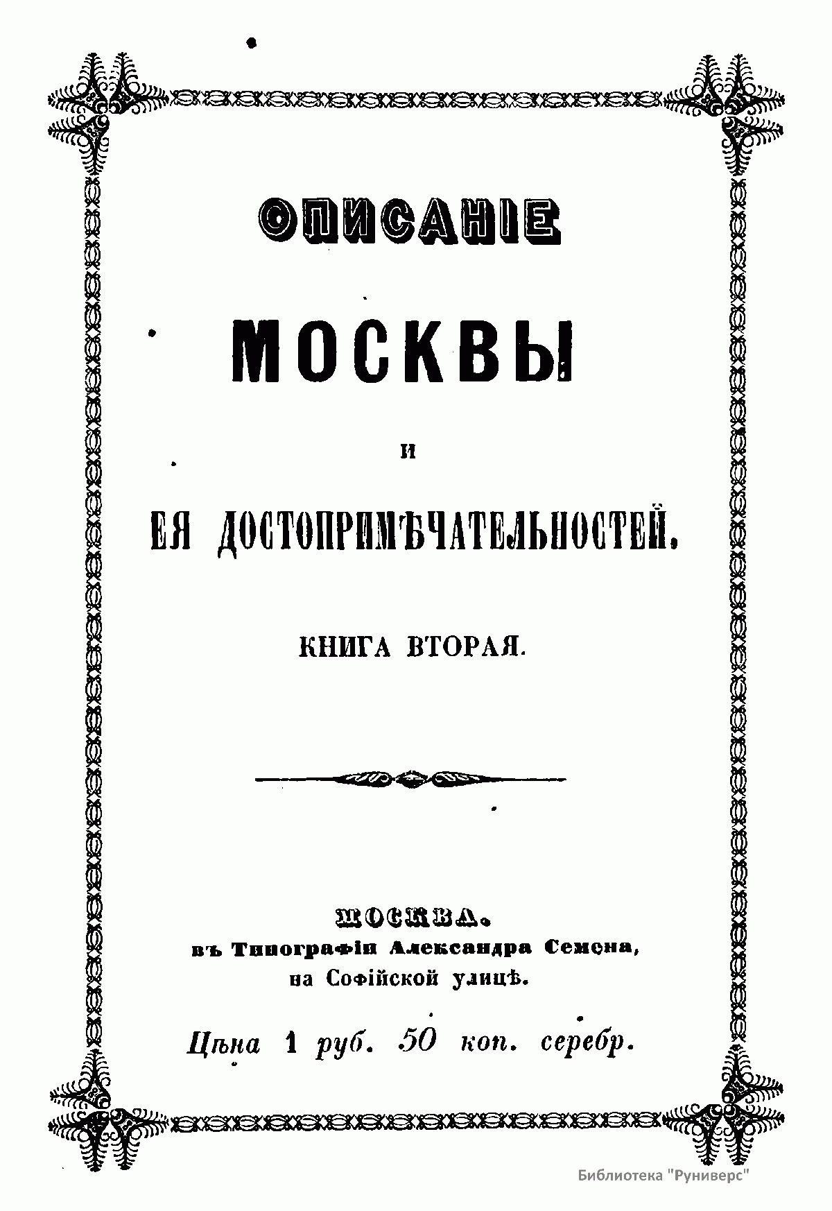 Описанiе Москвы и ея достопримѣчательностей. Книга вторая
