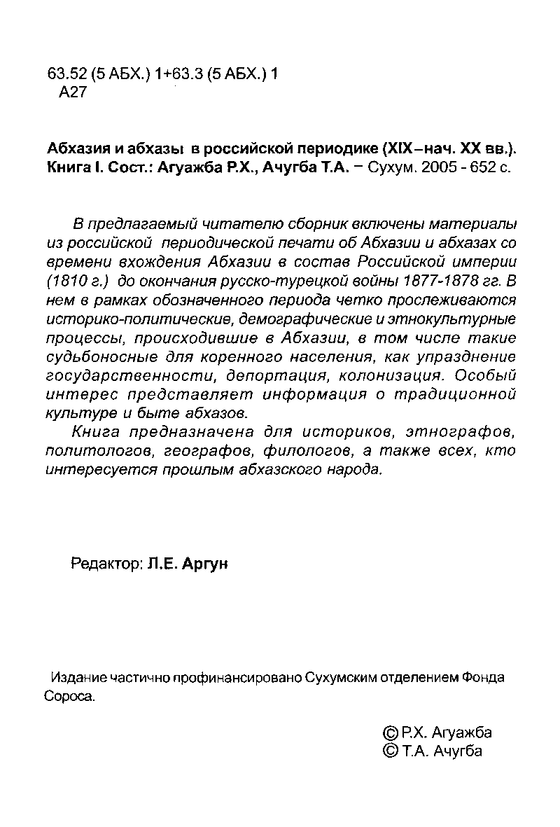 Абхазия и абхазы в российской периодике (XIX - нач. XX вв.)