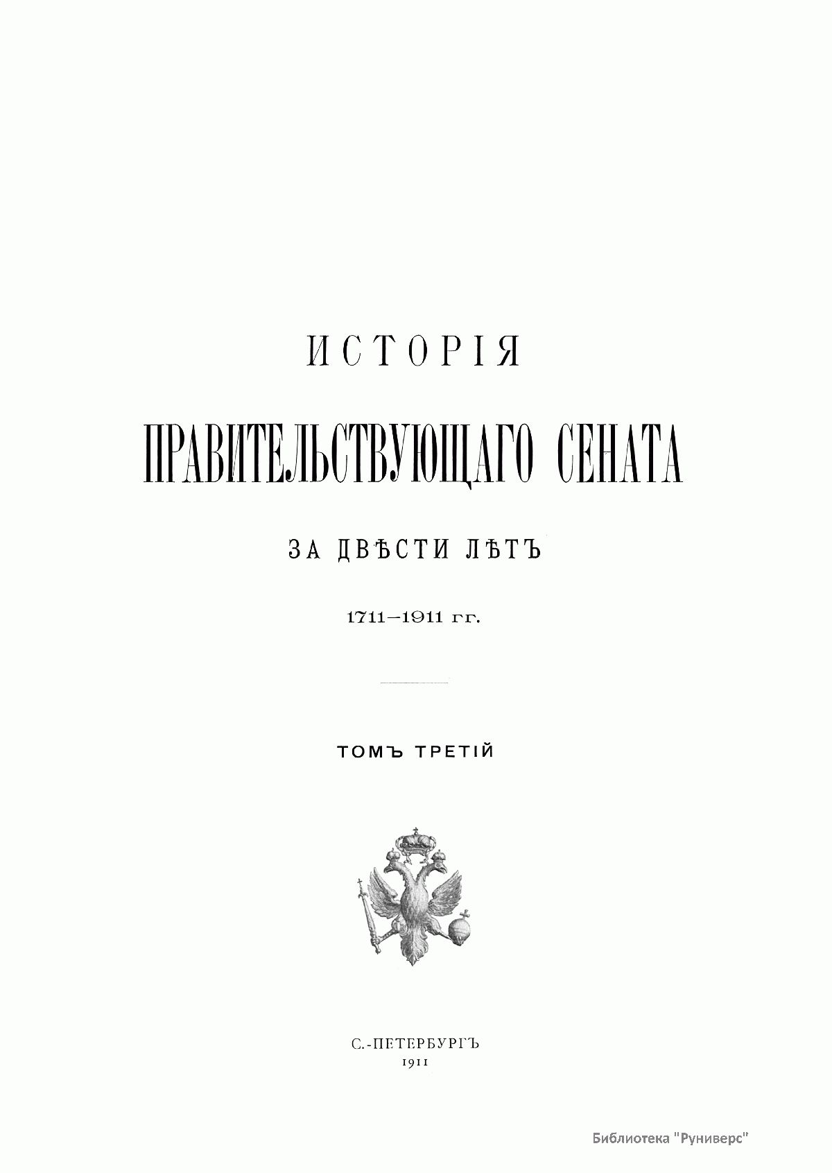 Исторiя Правительствующаго сената за двѣсти лѣтъ. 1711-1911 гг. Томъ третiй