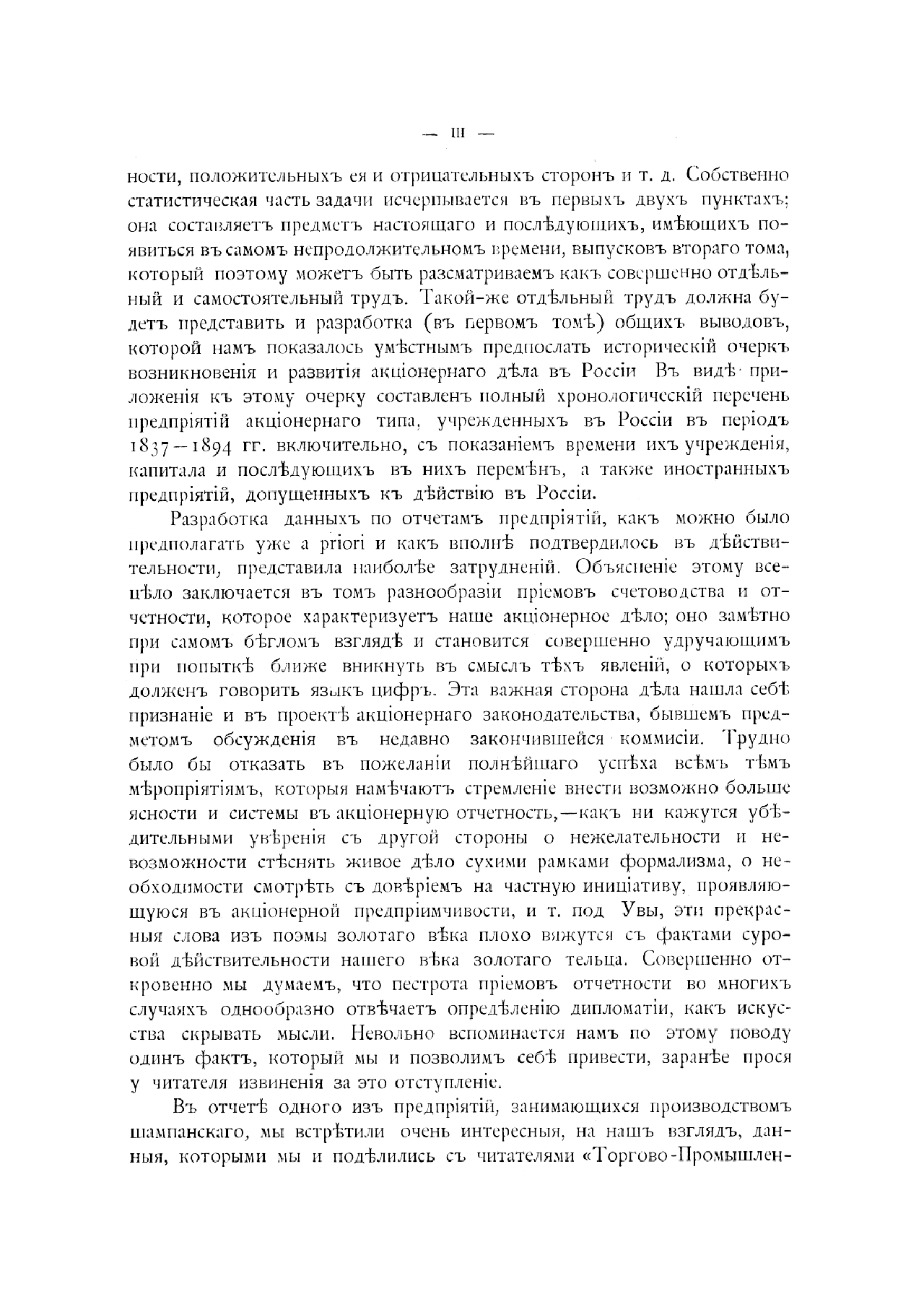 Работа над собранным в книге материалом началась в 1885-м и была завершена в 1894 году. Все предприятия акционерного типа, согласно утвержденным в 1885 году правилам об обложении допол-нительными сборами, были обязаны систематически оглашать результаты их деятельности. Эти же правила обязали казенные палаты сообщать редакции «Вестника финансов» списки всех обществ и товариществ, главные правления которых находятся в черте губерний, а также другие сведения. Таким образом, в основу книги вошли отчеты предприятий, печатавшиеся в «Вестнике финансов», в том виде, как их предоставляли предприятия для оглашения в печати. Помимо статистических сведений, собранных в семи выпусках второго тома, планировалось издать отельный труд (первый том) с общими выводами и историческим очерком возникновения и развития акционерного дела в России.