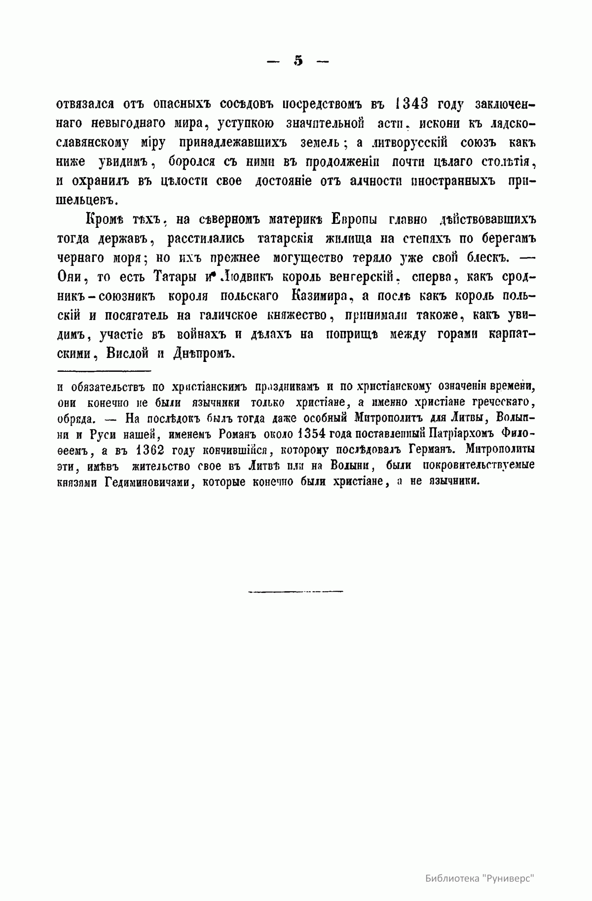 Автор адресует свой труд «истинным любителям науки и исторических разыскиваний». В книге опубликованы латинские выписки из сочинений польских историков Анонима Гнезненского и Иоанна Длугоша, относящиеся к истории Галицко-Владимирской Руси, за период от 1337-го по 1387 год, с русским переводом и критическими замечаниями. Автор ставит цель исследовать, каким образом эта часть русского мира попала под власть польской державы. Во вступлении дана характеристика европейского Севера, к которому принадлежала и Галиция, в древности. Поселившийся на севере Европы многочисленный славянский народ разделился на два мира - русский и лядский (польский). Первым управляли потомки Рюрика, а вторым потомки Пяста. Когда в русском мире с кончиной Ярослава Мудрого, а в лядском мире с кончиной Болеслава Кривоустого прекратилось единодержавие, оба мира распались на множество больших и малых удельных княжеств, которые тем не менее оставались исключительным достоянием обоих господствовавших родов. В XIV столетии в обоих мирах разъединенные части стали сливаться в большие государства. Однако в лядском мире возникло два польских королевства, два польских короля: Иоанн Слепой король чешский писался польским королем, и Казимир Владиславович Великий употреблял титул польского короля. Равным образом в две отдельные системы сгруппировался и русский мир: в состоявшую тогда под монгольским владычеством Русь и в литовскую Русь. В татарской Руси московские князья в борьбе с тверской линией Рюриковичей за великокняжеское достоинство, в попытке низвергнуть татарское иго, в стремлении покорить мелкие единородные княжества и усмирить своевольную новгородскую республику, стали только предвещать будущее свое величие. Совсем другим образом устроилась западная Русь, литворусская держава. После смерти королевича Шварно Даниловича в Литве настала новая династия Гедиминовичей. Сначала Гедиминовичи завладели оружием многими русским землями, а после через вступление в браки с русскими княжнами сроднились с Рюриковичами, приняли русское вероисповедание, язык и обычаи. Образовался сильный союз больших и меньших князей Гедиминовичей и Рюриковичей с удивительным согласием между собой: они воевали вместе против прусских крестоносцев, поляков, венгров, татар, татарам подвластных северо-восточных русских князей, освободили западную Русь от татарского данничества. Так возникла Литовская Русь. Во второй половине XIII столетия между реками Вислой, Неманем и Балтийским морем, между пределами Польши, Литвы и Руси зародилось и устроилось новое странное государство воинов-монахов – прусских крестоносцев, которых поляки называли Крижаками. Эта держава постоянно усиливалась бродячими рыцарями целого запада Европы и достигло в XIV веке могущества: было грозой соседних народов и имело большое влияние на дела северной Европы. Польский король Казимир в 1343 году заключил с опасными соседями невыгодный мир, уступив им большую часть исконных земель, а литворусский союз боролся с ними почти целое столетие и сохранил в целости свое достояние. Кроме этих главных держав, действовавших на севере Европы, по берегам Черного моря расстилались татарские жилища, но их прежнее могущество теряло свой блеск. Татары и Людвиг король венгерский – сперва как сродник-союзник польского коро