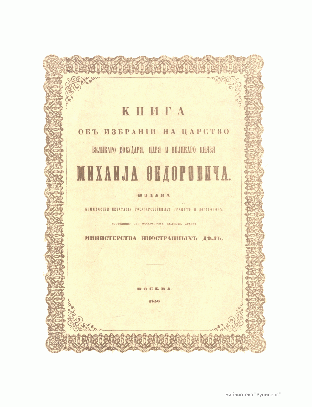 Книга объ избранiи на царство Великаго Государя, Царя и Великаго Князя Михаила Ѳедоровича