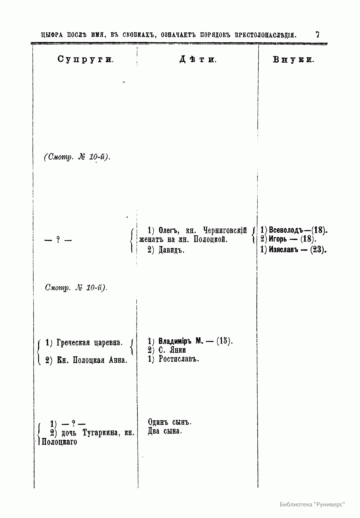 В книге опубликованы две таблицы. В них указан порядок престолонаследия Дома Рюриковичей и Дома Романовых до Александра II, а также сообщаются все основные события, происходившие при великих князьях и царях.