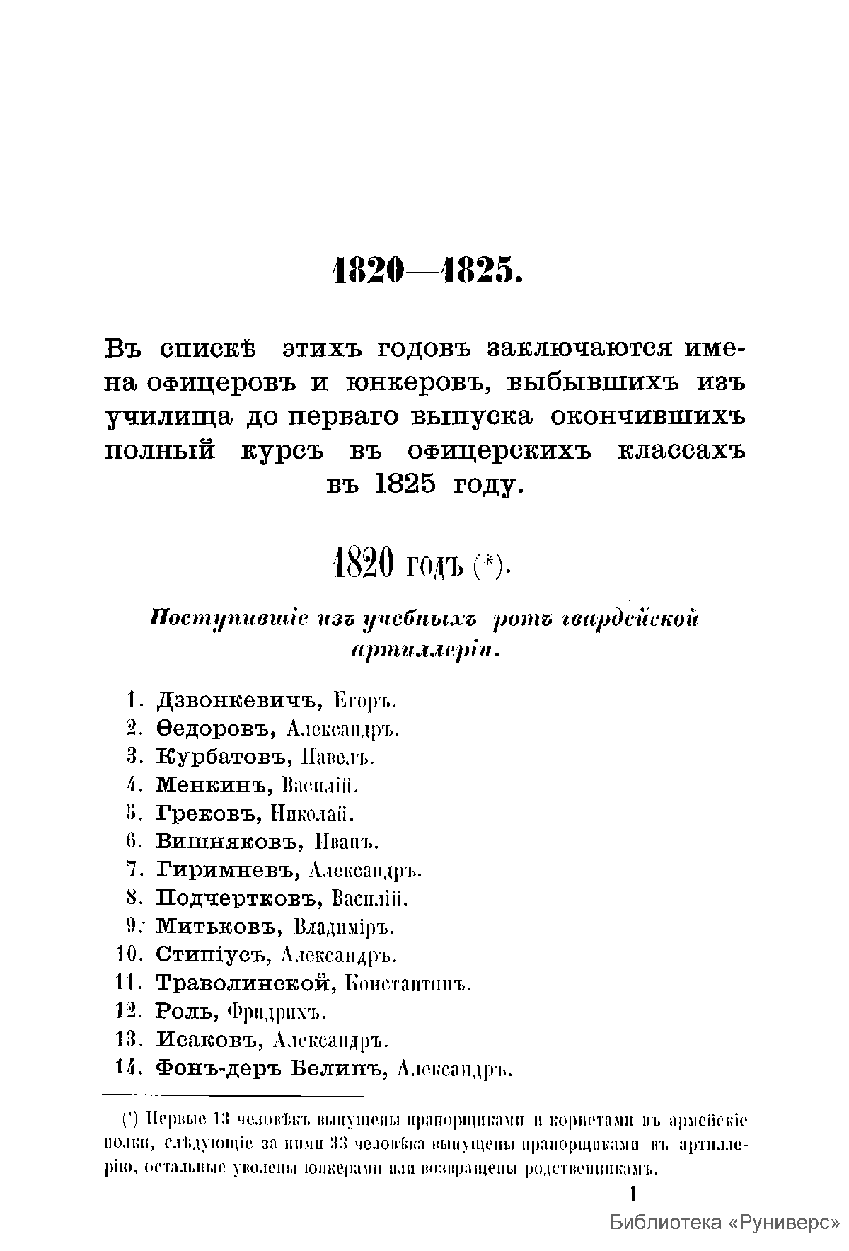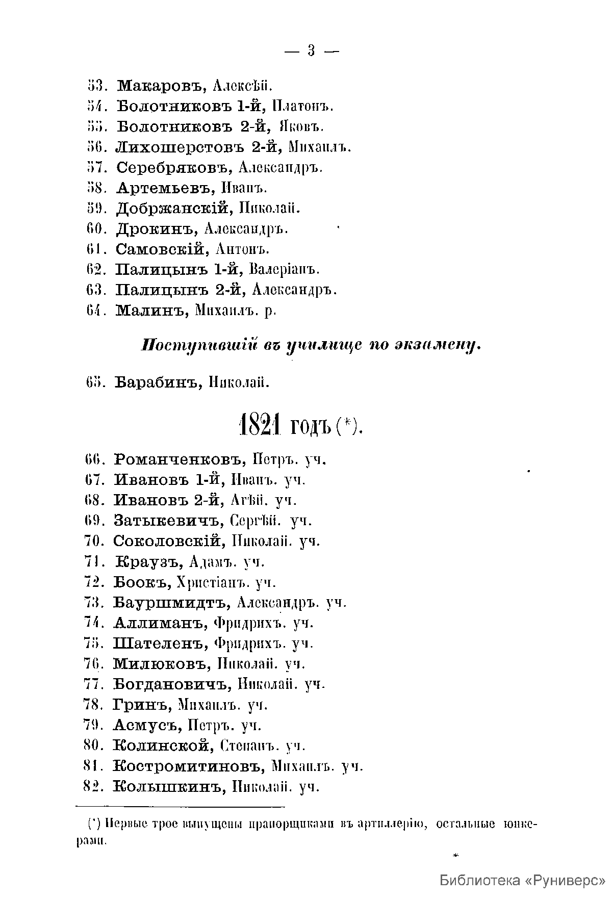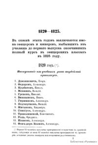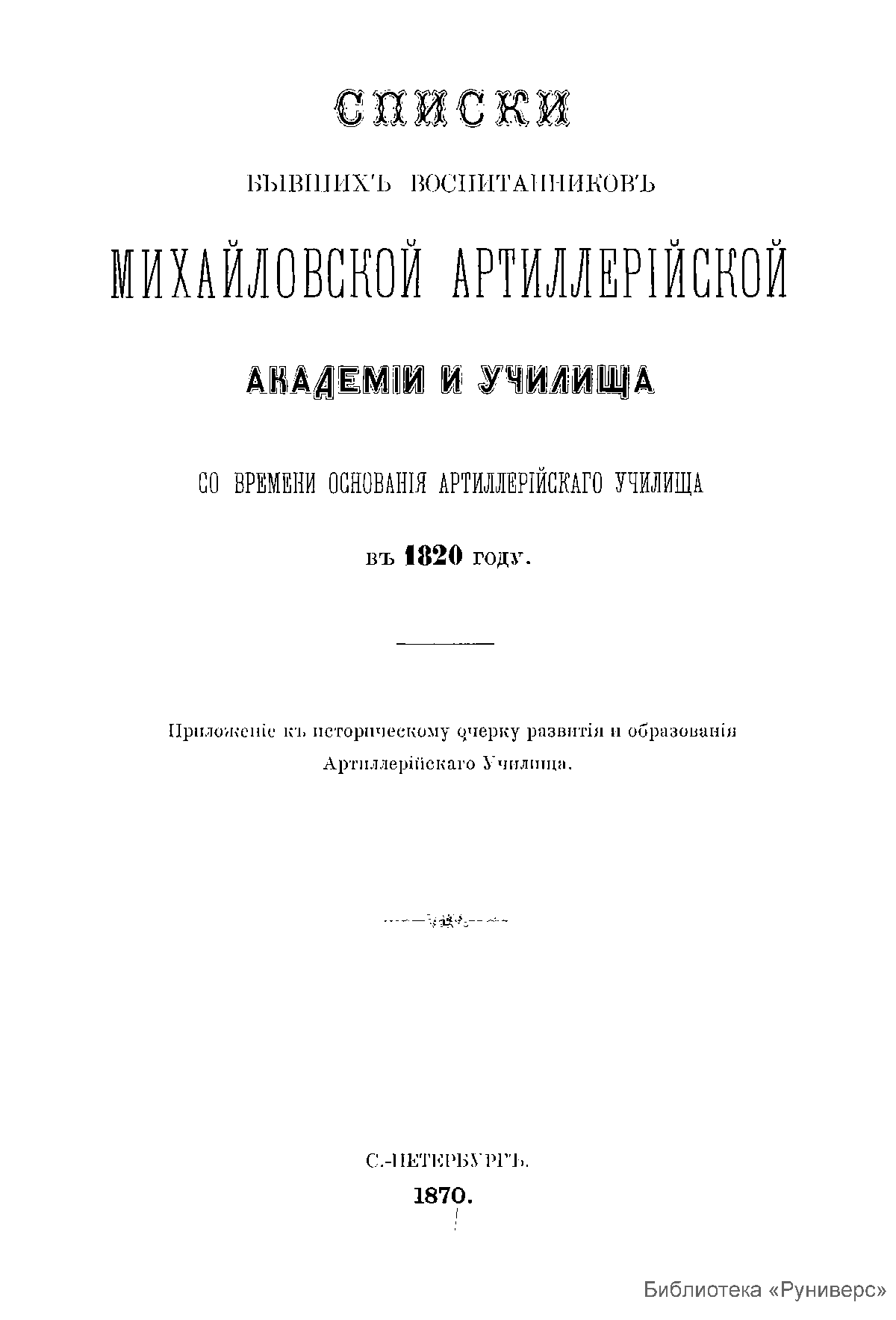 Списки бывших воспитанников Михайловской артиллерийской академии и училища со времени основания артиллерийского училища в 1820 году