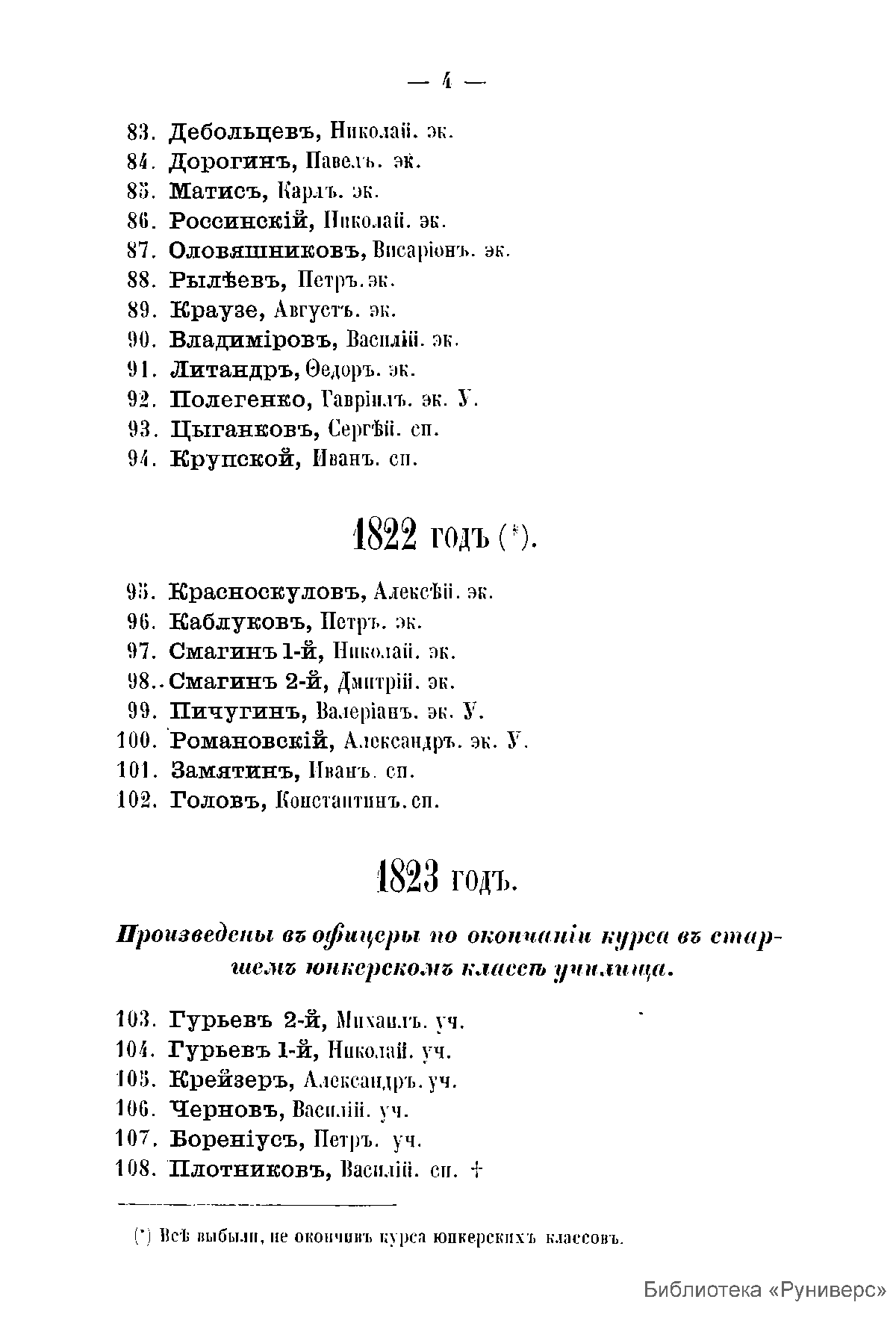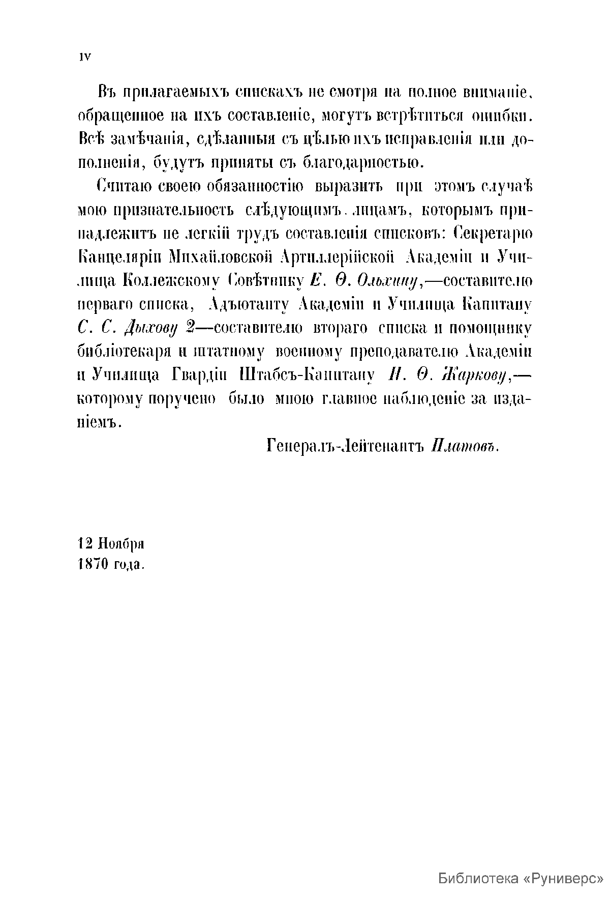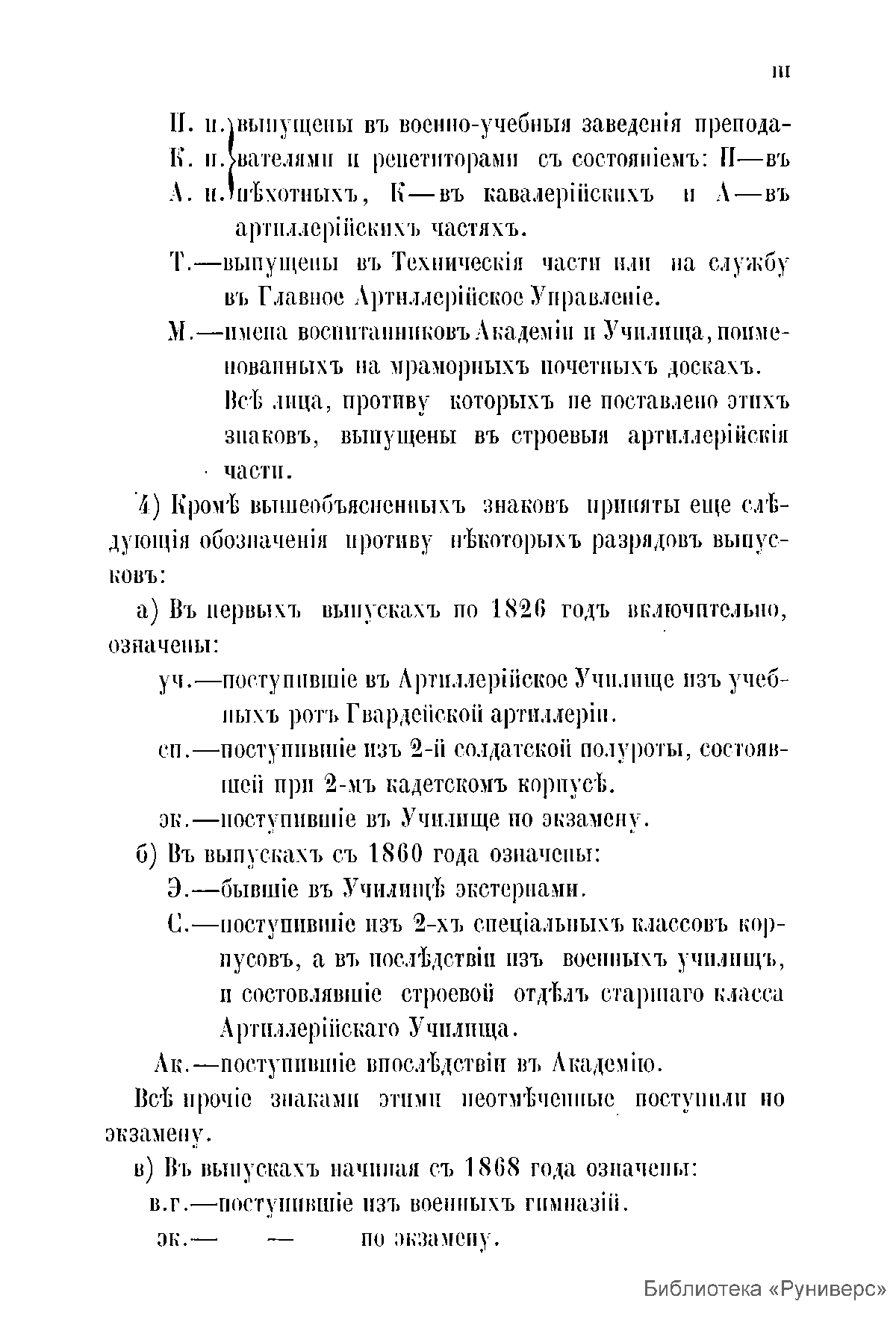 Списки бывших воспитанников Михайловской артиллерийской академии и училища со времени основания артиллерийского училища в 1820 году