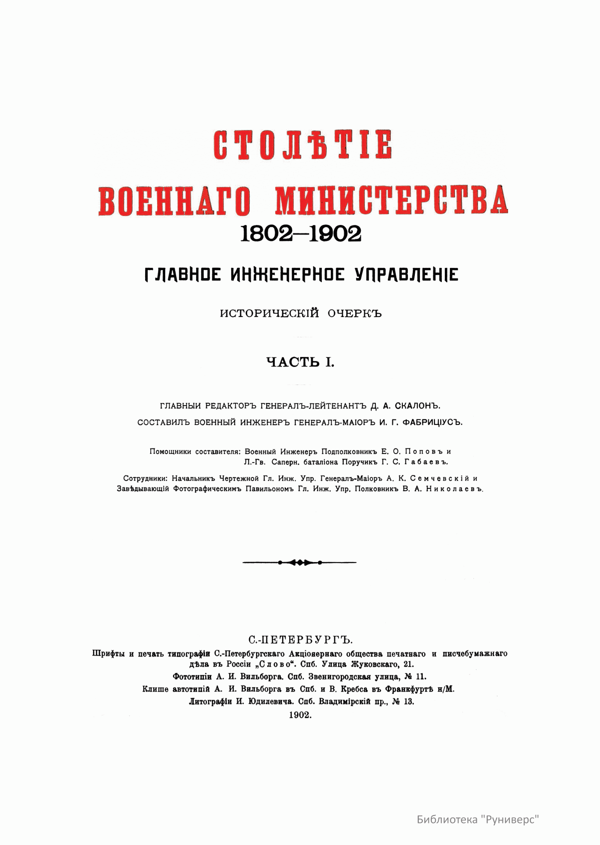 Столетие военного министерства. 1802-1902. Главное инженерное управление. Исторический очерк. Второй очерк