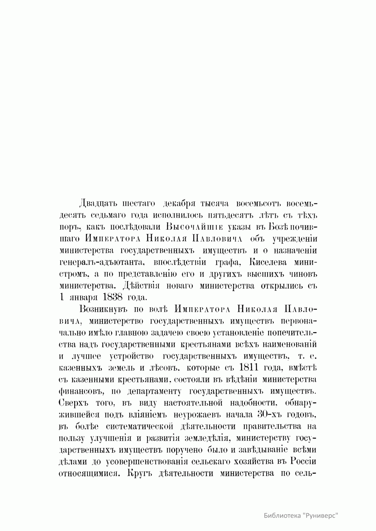 Историческое обозрѣнiе пятидесятилѣтней дѣятельности министерства государственныхъ имуществъ. 1837-1887