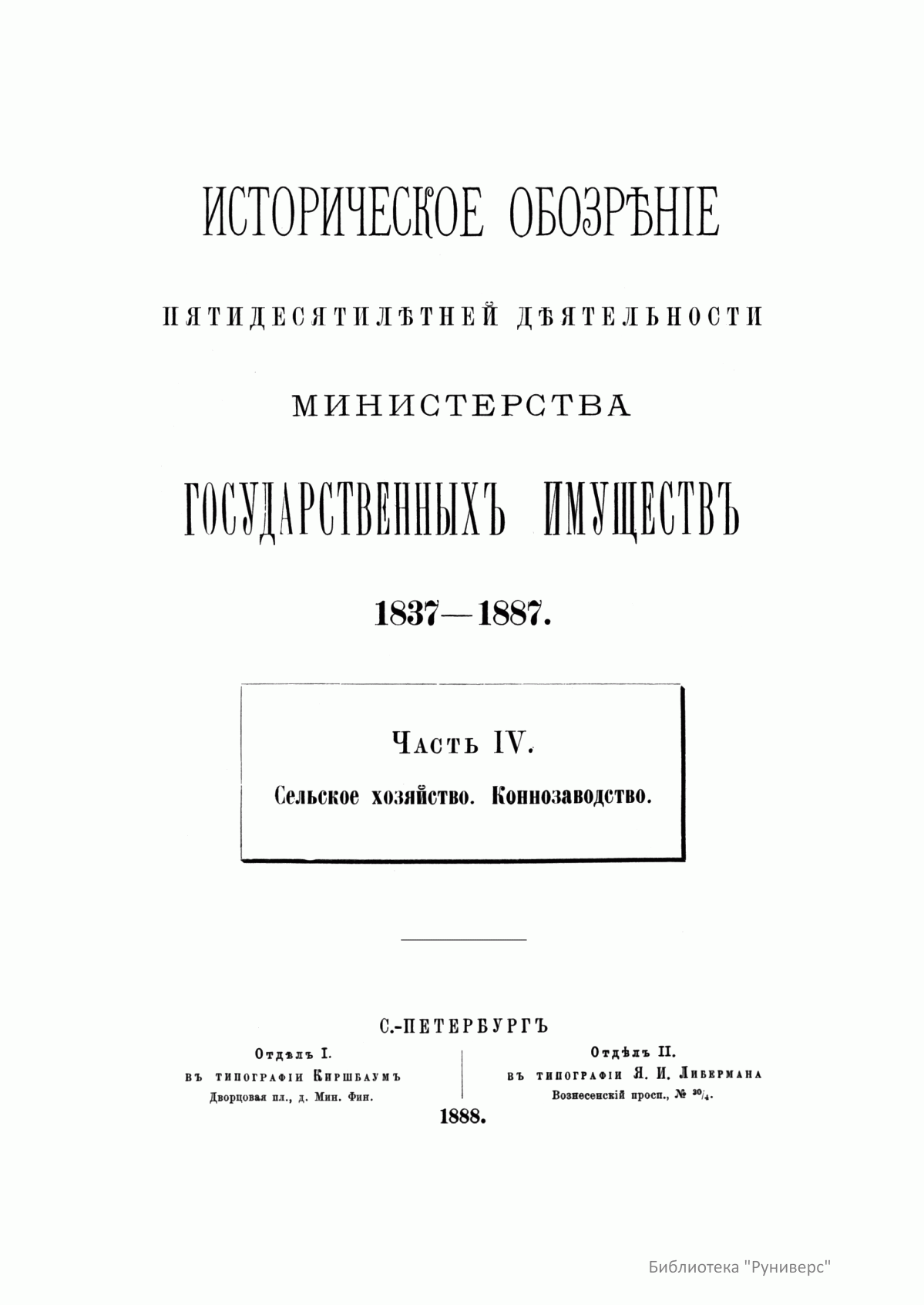 Историческое обозрѣнiе пятидесятилѣтней дѣятельности министертва государственныхъ имуществъ. 1837-1887. Часть IV. Сельское хозяйство. Коннозаводство