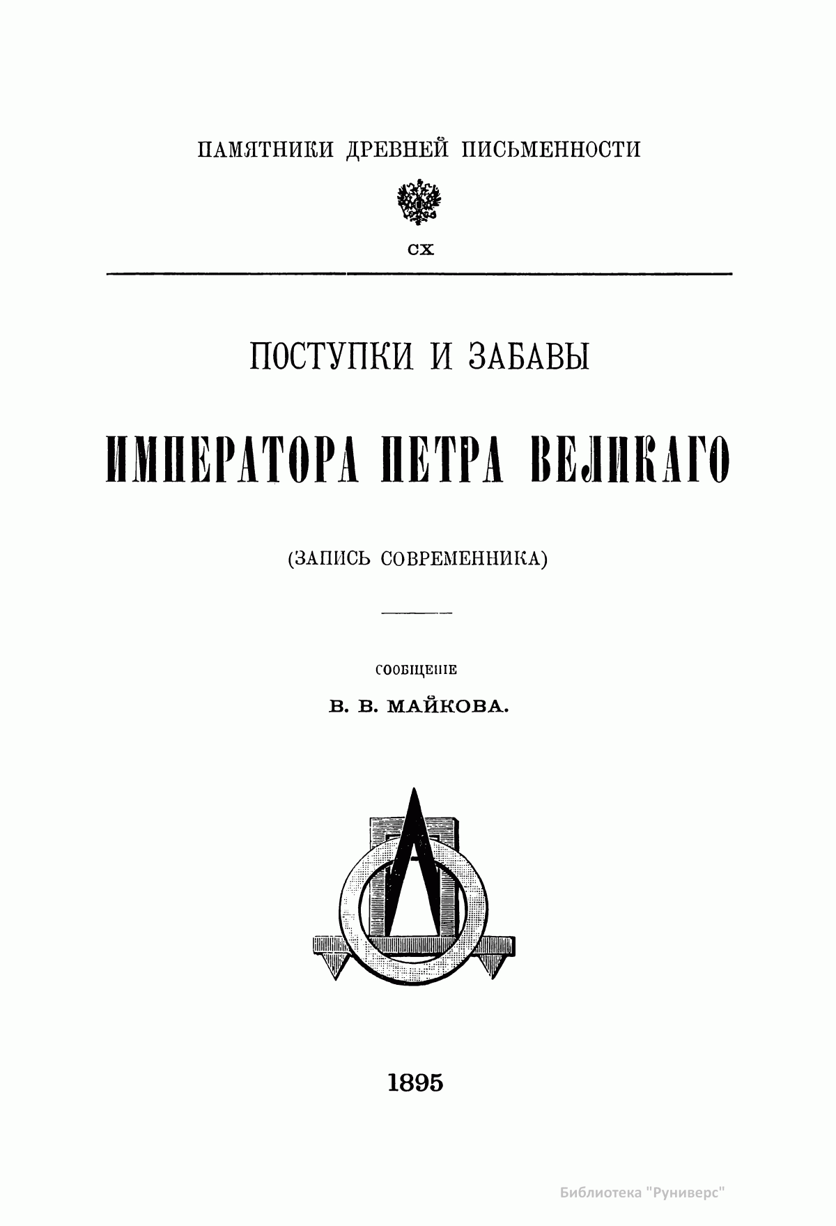 Издание графа И.И. Толстого. Типография Императорской Академии наук