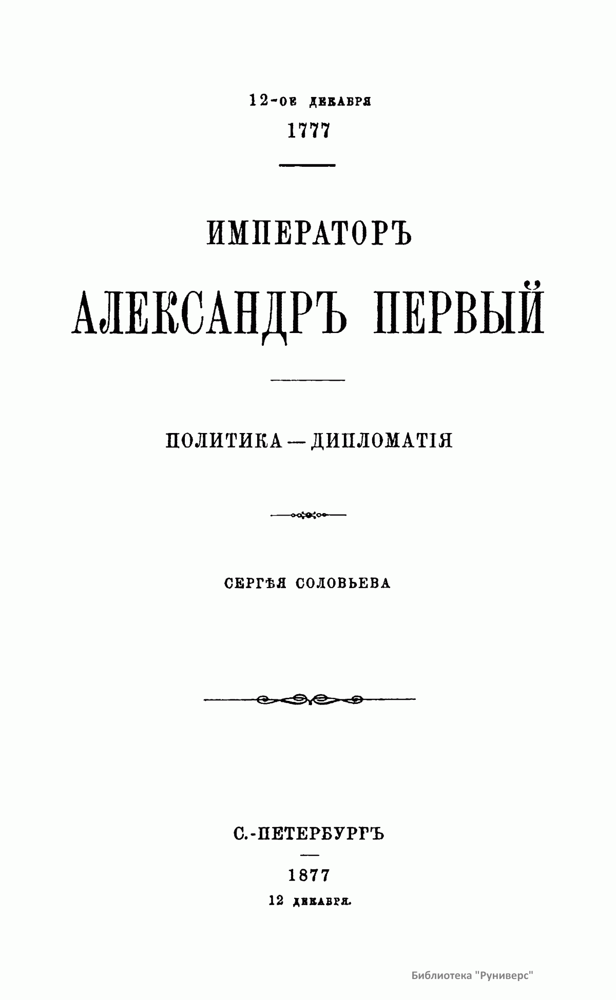 Императоръ Александръ Первый. Политика - Дипломатiя
