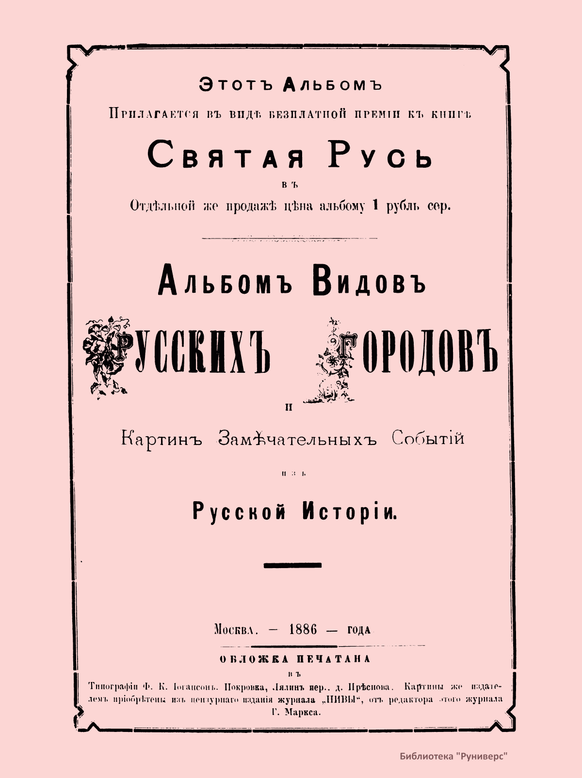 Альбомъ Видовъ Русскихъ Городовъ и Картинъ Замѣчательныхъ Событiй изъ Русской Исторiи