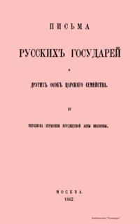 Настоящие письма изданы комиссией печатания государственных грамот и договоров, состоящей при Московском главном архиве министерства иностранных дел. Кроме материалов Главного архива комиссия пользовалась собраниями Государственного архива С.-Петербурга, Императорской публичной библиотеки и Румянцевского музея. Письма русских государей и других особ царского семейства представляют собой любопытный исторический памятник.