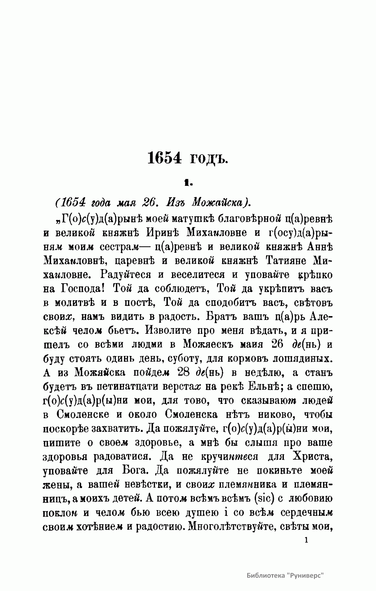 Письма русских государей и других особ царского семейства. V. Письма царя Алексея Михайловича